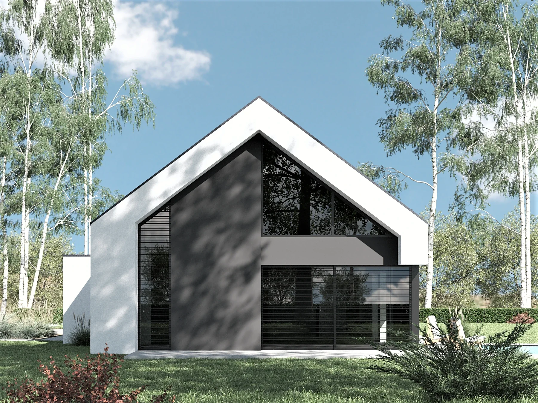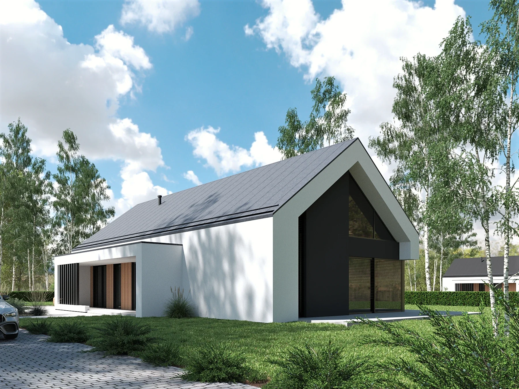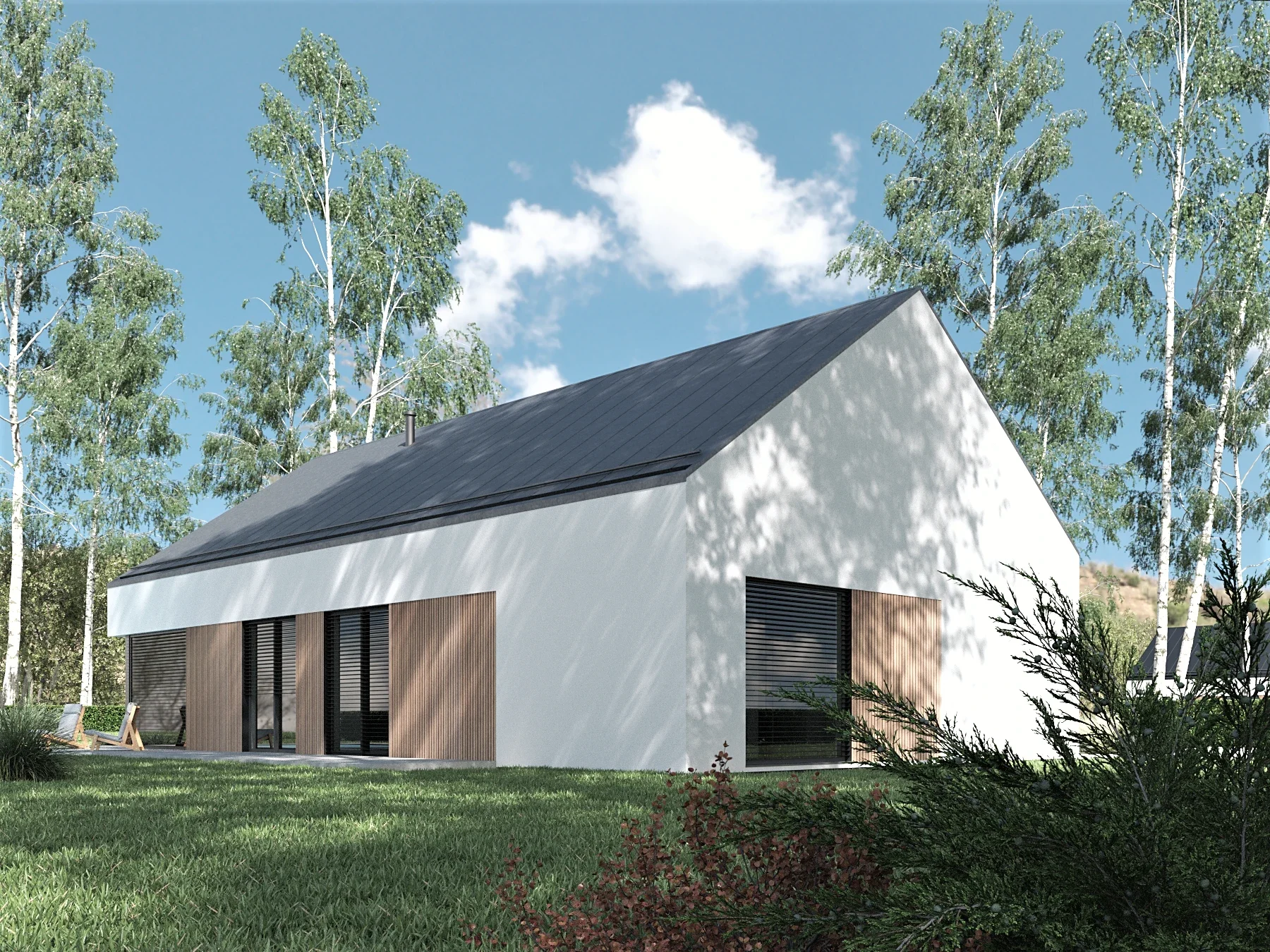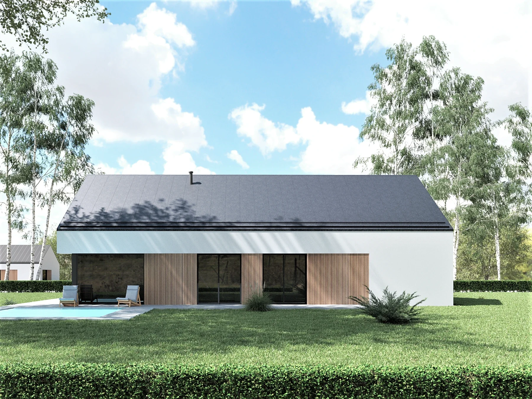 Če iščete pritlično hiše za zahtevno in ozko parcelo je hiša 121 morda popolna izbira. Funkcionalna razporeditev omogoča, da se dnevna soba nahaja na južni strani in se odpira na vrt ob strani ali za hišo v povezavi z naravo.